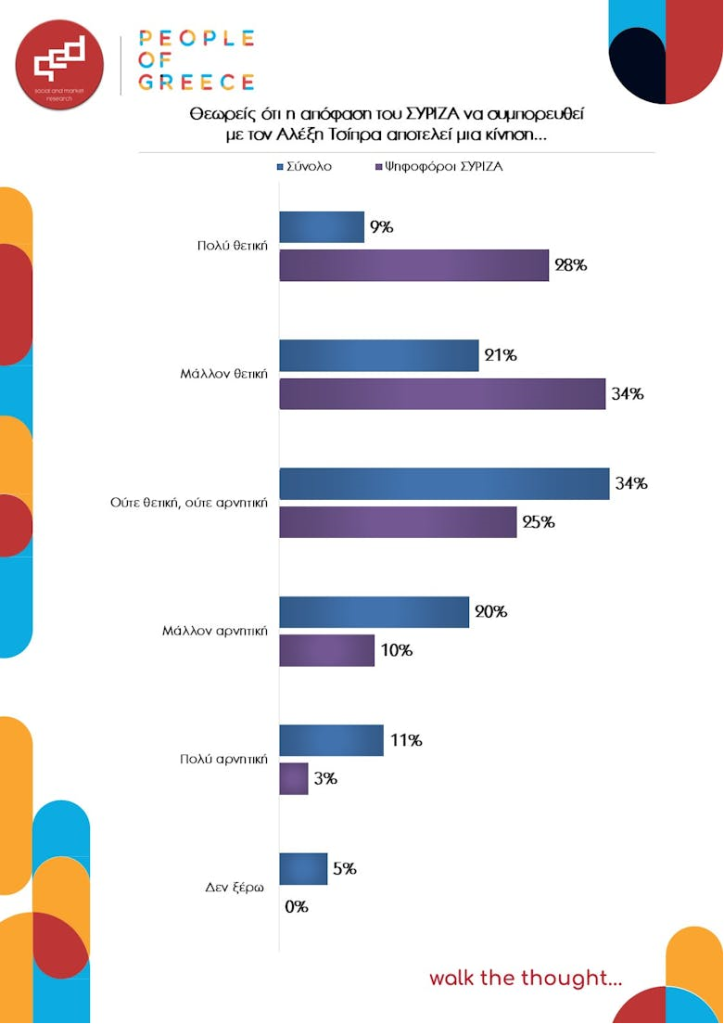 - Η πιθανή σύμπραξη ΣΥΡΙΖΑ – Τσίπρα αντιμετωπίζεται θετικά από τη βάση του κόμματος, και από το 1/3 της ελληνικής κοινωνίας.