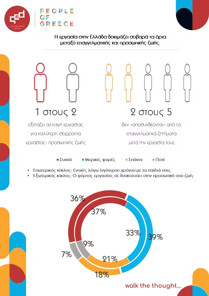 - Ποιοι παράγοντες (ωράριο, κουλτούρα οργανισμού, τηλεργασία, διοίκηση, τεχνολογία) συμβάλλουν περισσότερο στην αδυναμία των Ελλήνων εργαζομένων να διατηρήσουν υγιή ισορροπία μεταξύ εργασίας και προσωπικής ζωής;