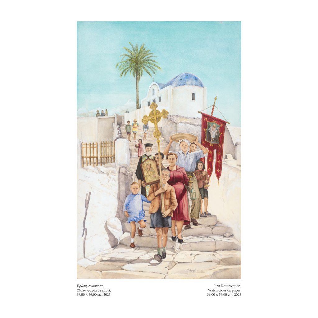 Η έκθεση παρουσιάστηκε τον Αύγουστο του 2025 στο Βιομηχανικό Μουσείο Τομάτας «Δ. Νομικός» στη Βλυχάδα Σαντορίνης και τον Δεκέμβριο του ιδίου έτους μεταφέρθηκε στην Αθήνα, στο ιστορικό κτίριο του Φιλολογικού Συλλόγου «Παρνασσός» και ολοκληρώνεται στις 24 Ιανουαρίου 2026. Την επιμέλεια υπογράφουν ο αρχαιολόγος Λευτέρης Ζώρζος και η αρχιτέκτονας Νίνα Γεωργιάδου, με συνεπιμέλεια του Νίκου Βατόπουλου. Το ημερολόγιο περιλαμβάνει δώδεκα υδατογραφίες —μία για κάθε μήνα— με επεξηγηματικά κείμενα, πρόλογο του Δημάρχου Θήρας και κείμενα των επιμελητών. Είναι δίγλωσσο, με αγγλική μετάφραση του Γιώργου Γεωργιάδη.