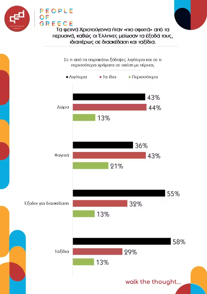 • το αν ξόδεψαν περισσότερα ή λιγότερα χρήματα τα φετινά Χριστούγεννα σε σχέση με πέρυσι,