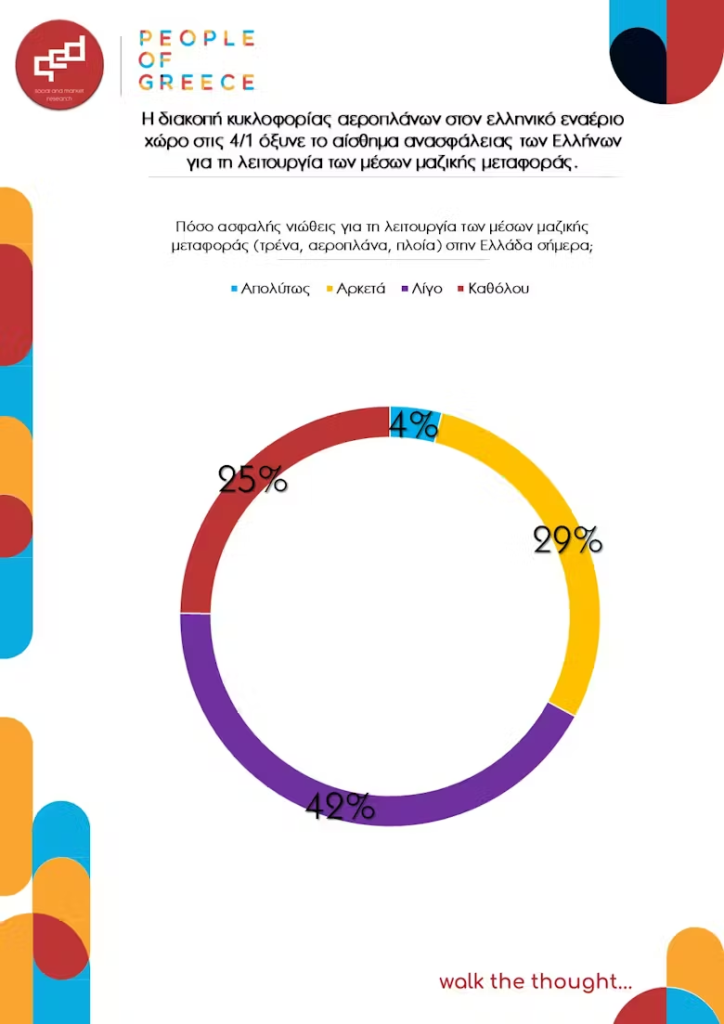 • το αν αισθάνονται ασφάλεια με τη λειτουργία των μέσων μαζικής μεταφοράς, με αφορμή τη διακοπή λειτουργίας του εναέριου χώρου της επικράτειας στις 4/1,