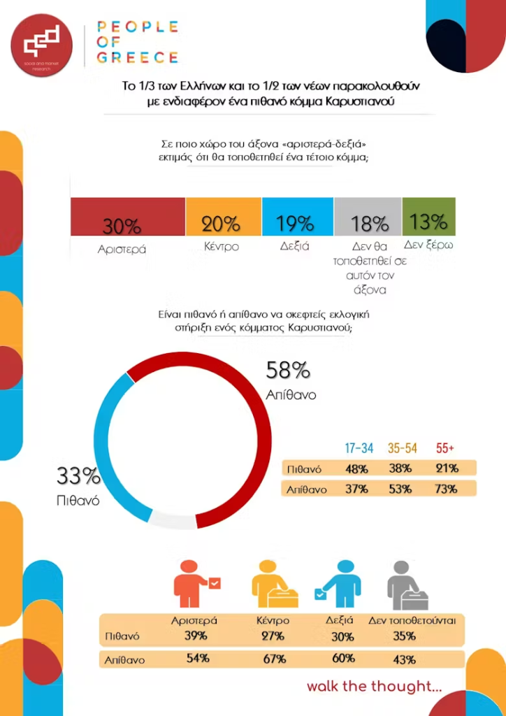 • το πού τοποθετούν πολιτικά το υπό ίδρυση κόμμα της Μαρίας Καρυστιανού και το αν θα το ψήφιζαν,