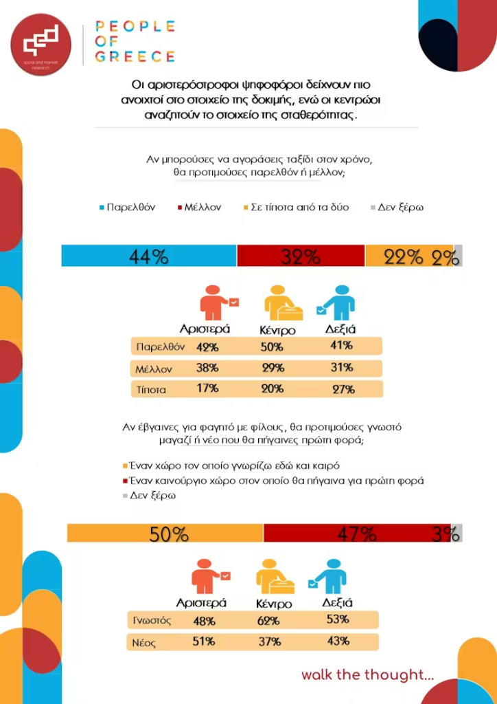 - τις επιλογές διασκέδασης ή ταξιδιών που θα έκαναν επί του άξονα «γνώριμο/άγνωστο»,