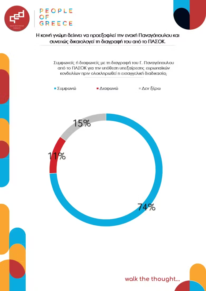 - τη γνώμη τους για τη διαγραφή του Προέδρου της ΓΣΕΕ από το ΠΑΣΟΚ υπό το βάρος της εισαγγελικής διερεύνησης πιθανής εμπλοκής του Γιάννη Παναγόπουλου σε υπόθεση υπεξαίρεσης,