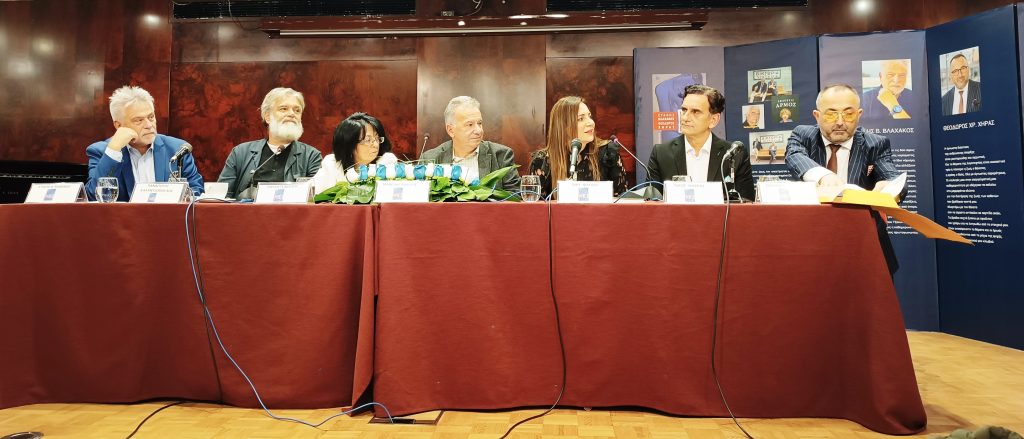 Την Παρασκευή 7 Νοεμβρίου, στο κατάμεστο αμφιθέατρο του Ιδρύματος Εικαστικών Τεχνών και Μουσικής Β. & Μ. Θεοχαράκη, παρουσιάστηκε το Blue, το νέο μυθιστόρημα των Στάθη Βλαχάκου και Θεόδωρου Χήρα. Δύο γιατροί, που ταυτόχρονα είναι  και λογοτέχνες, συναντήθηκαν δημιουργικά σ’ ένα εγχείρημα ασυνήθιστο, τολμηρό και γοητευτικά ριψοκίνδυνο: Ένα βιβλίο γραμμένο εξ ημισείας, χωρίς προηγούμενη συνεννόηση, με τον έναν να παραλαμβάνει το κείμενο από τον άλλον και να το συνεχίζει όπως εκείνος φανταζόταν.