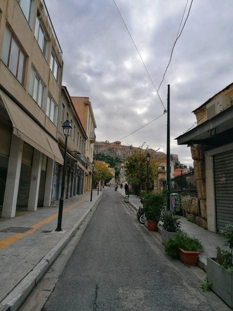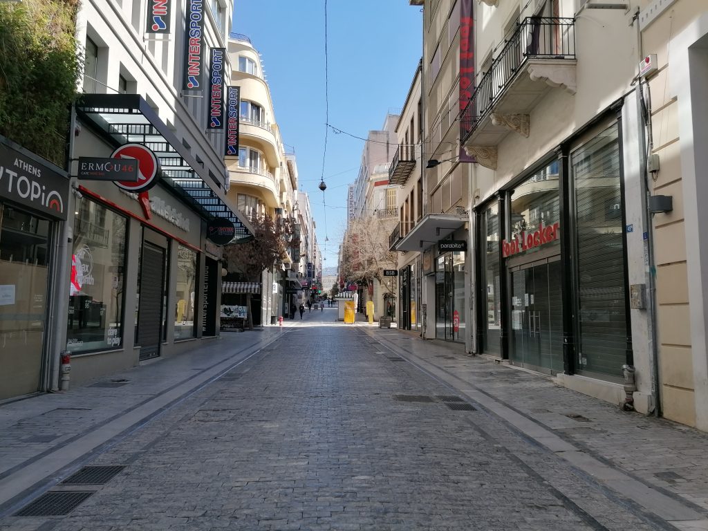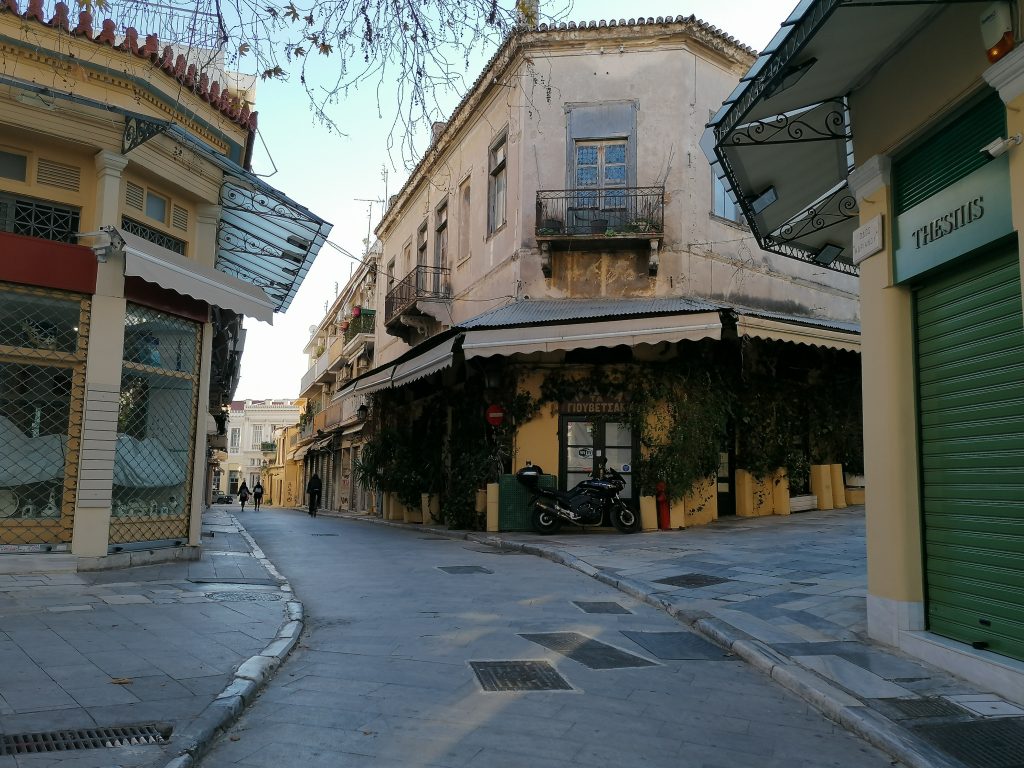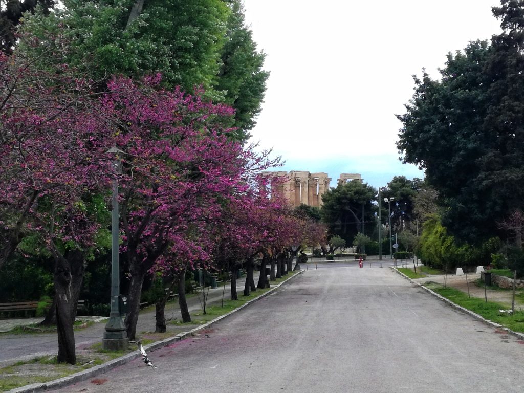 Και όμως, αυτή η αφαίρεση δεν έφερε ακριβώς ηρεμία. Παρά τα κελαηδίσματα των πουλιών που έσπαγαν τη σχεδόν εκκωφαντική σιωπή, παρά τις γάτες που περιφέρονταν ή λιαζόντουζαν ανενόχλητες σε γειτονιές όπως η Πλάκα, παρά τα ανθισμένα δέντρα – νερατζιές, κουτσουπιές, γλυσίνες – που προσπαθούσαν με την όμορφη και ευωδιαστή παρουσία τους να τραβήξουν την προσοχή μας, η εικόνα των κλειστών μαγαζιών και των άδειων δρόμων παρέμενε απόκοσμη. Τίποτα δεν θύμιζε τη ζωντανή, πολύβουη πρωτεύουσα.